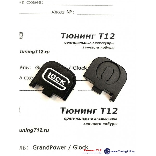 Заглушки доступны полностью чёрного цвета и с лазерным белым рисунком в форме черепа (эмблема "каратель"), мальтийского креста, надписи Glock Perfection. При размещении заказа выберите необходимую Вам модель (укажите в примечаниях).
