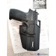 Модель DNMC PRO UNI - поясная открытая универсальная кобура из полимера для наружнего ношения пистолетов Glock, Grand Power, Sig и Colt. С регулировками под различные модели пистолетов. С системой активной фиксации оружия в кобуре за скобу - Level 2. Крепление на ремень шириной до 50 мм на различных креплениях: быстросъёмной пластиковой лопатке, на пластиковой клипсе или на универсальном креплении (комплектация на выбор покупателя). Все крепления могут регулироваться и устанавливаться под любым углом наклона. Кобура сделана из полимера марки PA66 (производства USA) толщиной 3 мм. Цвет матовый чёрный. Совместное производство компании DNMC и GF Holsters (Тайвань/Эстония).