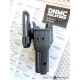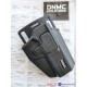 Модель DNMC-55U - набедренная открытая универсальная кобура из полимера для ношения пистолетов Glock, Grand Power, ПЛК, Тень 37, Sig и Colt на бедре. Система состоит из кобуры DNMC PRO UNI с поясным креплением MRS-4 и набедренной платформы-крепления MRS-21. Кобура изготовлена с внутренними регулировками под различные модели пистолетов. Имеет систему активной фиксации оружия в кобуре за скобу - Level 2. Крепление на поясе осуществляется на крепленииMRS-4, а на бедре на многофункциональной платформе модели MRS-21. Кобура и платформа сделаны из полимера марки PA66 (производства USA) толщиной 3 мм. Производство компании MG Holsters и DYNAMIC Holsters (Тайвань/Эстония).