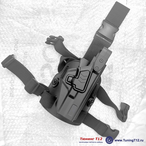 Кобура предназначена для ношение оружия на бедре в вертикальном положении. Крепление MRS-21 позволяет быстро снимать и одевать кобуру, а так же легко регулировать ремни (натяжение и положение платформы). Кобура может крепиться на платформе под любым углом. Удобный, практичный и недорогой вариант из многих набедренных систем.