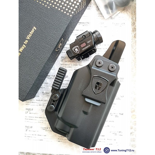 Комплект №3 - фонарь + IWB кобура из полимера для Glock 17/G19 модель WRL-17MA1-Pol (для скрытого ношения пистолета именно с этим фонарём) + подарочная коробка.
