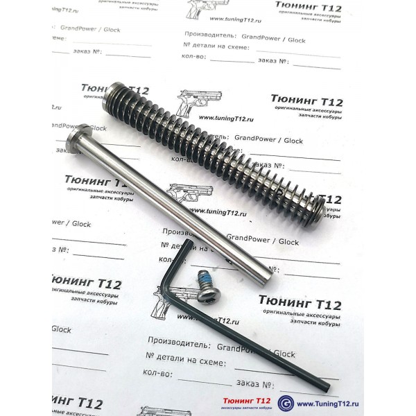 Эта модель направляющей - разборная и имеет техническую возможность для смены возвратных пружин. Можно ставить на неё штатные листовые пружины Glock на 17 lbs или листовые пружины от сторонних производителей различной жёсткости - спортивные на 13 lbs и 15 lbs от американской компании ISMI и усиленные на 20 lbs от компании DNMC (все варианты пружин доступны в ассортименте).