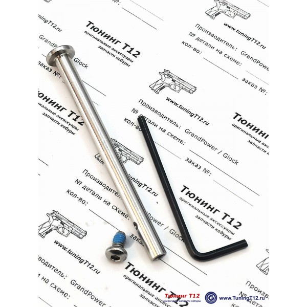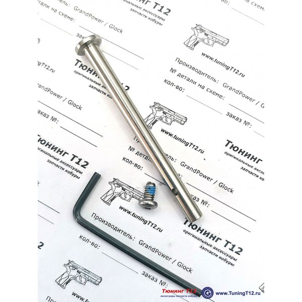 Направляющая из нержавеющей стали для пистолетов Glock 17 Gen3 в сборе с листовой возвратной пружиной. Модель DNMC MSR-17. Полный аналог по размерам, функционалу и назначению оригинальной детали №3 на взрыв-схеме. В комплект поставки входит: направляющая, листовая пружина жёсткостью от 13 до 20 lbs (от 6 до 8,5 кг) на выбор покупателя, фиксирующий пружину торцевой винт с круглой декоративной шляпкой и ключ для винта. Все детали направляющей выточены из нержавеюшей стали марки AISI 304. Общая длинна направляющей - 82 мм. Толщина штока - 5,8 мм. Головка винта 70х22 мм. Производство компаний Dynamic и ET (Эстония).