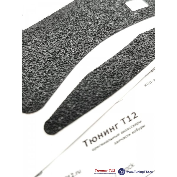 Нескользящая фактурная поверхность накладки обеспечивает наиболее плотный хват оружия и удержание его при стрельбе. Особенно влажными руками. Повышенный контроль оружия - улучшает скорость и точность стрельбы. Шкурка предохраняет пластик от сколов, потёртостей и царапин. При необходимости легко снимаются не оставляя никаких следов.