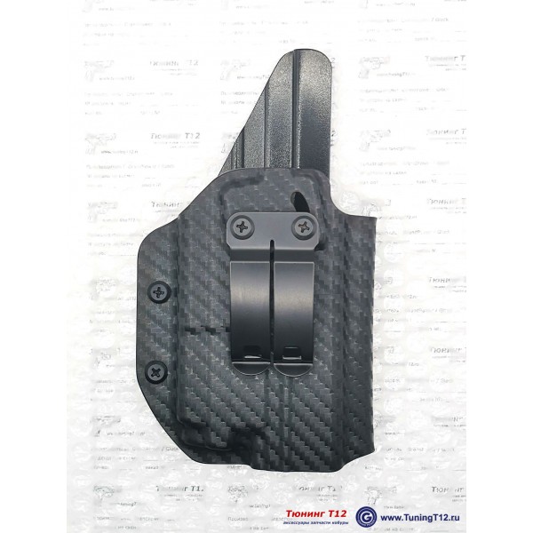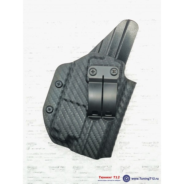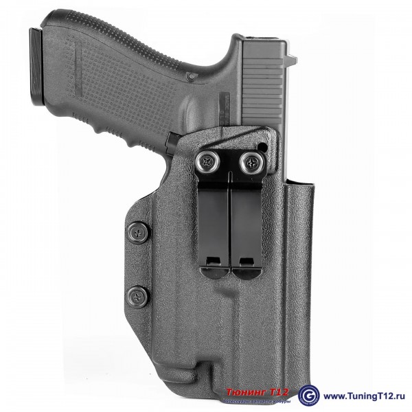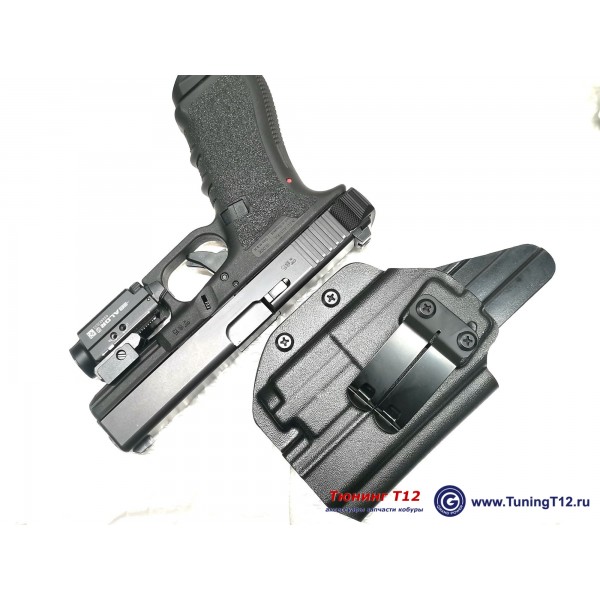 Классическая модель для скрытого ношения пистолета на поясе внутри штанов (тип IWB) в положении на 1-2 или 5-6 часов. Плотная и надёжная фиксация пистолета с фонарём в кобуре.