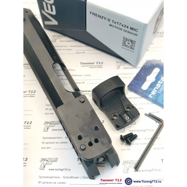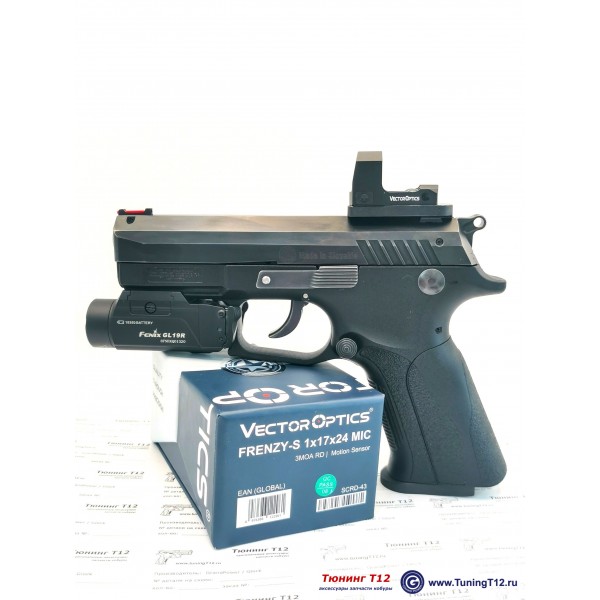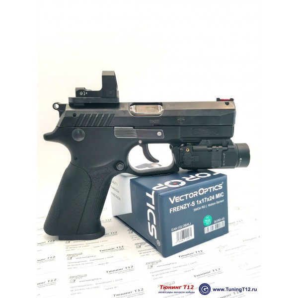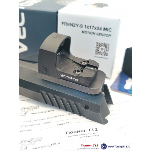 Коллиматорный прицел Vector Optics Frenzy-S 1x17x24 Green Dot (SCRD-G43) в комплекте с оригинальной пластиной-кронштейном креплением в затвор GP BRD №4 - для всех моделей пистолетов Grand Power. Полный комплект деталей, подготовленный для установки и настройки прицела "под ключ" - Set G3. Гарантия на все изделия комплекта - пожизненная. Производство компании "Vector Optics" Китай (коллиматор, лазерный патрон) и "Grand Power" Словакия (кронштейн). Хит продаж 2025. Выбор нашей компании - PRO-серия. Пистолетный коллиматор Vector Optics бизнесс класса с зелёной прицельной меткой. Полная водо/пылезащита. Автоматическое и ручное управление. Прицел всегда готов к работе. Лучший выбор в качестве первого оптического прицела для пистолета. Оптимальная модель коллиматора для EDC ношения. Самый легкий коллиматорный прицел в мире. Так же отлично подходит для спортивной и развлекательной стрельбы. В основной комплект поставки входит:1. коллиматорный прицел VO Frenzy-S 1x17x24 Green Dot SCRD-G43. Модель бизнесс класса с технологией Direct Bulb и многослойным просветляющим покрытием линз. Максимально компактный размер и вес. Входная линза 17x24 мм. Корпус из авиационного алюминия 7075 с чёрным матовым анодированием. Водо/пылезащита IPX6. Прицельная марка - зелёная точка размером 5 MOA c ручной регулировки яркости (8 уровней). Питание от батареи CR2032, до 50000 ч. работы. Включение по датчику движения или кнопкой, автовыключение через 2 минуты покоя. Вес прицела 18 грамм. Увеличение 1х (однократное). Без кронштейна на пикатини. Гарантия производителя T-VIP - пожизненная.2. Оригинальная пластина-кронштейн для установки коллиматорных прицелов на затвор пистолетов Grand Power RDB Модель №4. Стальная цельнофрезерованная. Вес 50 грамм. Защитное покрытие - чёрное матовое воронение. Пластина запрессовывается в штатную прорезь для целика и дополнительно фиксируется (распирается) двумя скрытми винтами. Производство компании Grand Power (Словакия). 3. винты крепления пластины и коллиматора к платформе, резиновая защитная крышка-чехол, батарейка Renata CR2032, ключи для настройки прицельной метки и для винтов. + Фиксатор резьбы LOCTITE 222. Дополнительная комплектация на выбор:- лазерный патрон калибра 9х19 для холодной пристрелки и настройки коллиматора. Vector Optics Модель SCBCR-11- кобура пластиковая поясная универсальная для ношения пистолета с установленным коллиматором модель DNMC-PRO (базовая комплектация с креплением MRS-5)Самый миниатюрный и самый лёгкий прицел в мире. Устанавливается сверху на затвор пистолета и заменяет классические прицельные приспособления (мушку и целик). Имеет широкие возможности регулировки точки по вертикали и горизонтали +-45 MOA. Обеспечивает высокую скорость и точность прицеливания на коротких дистанциях. Работает на одной батарейке до 3 лет. Держит отдачу любого травматического и огнестрельного калибра.