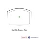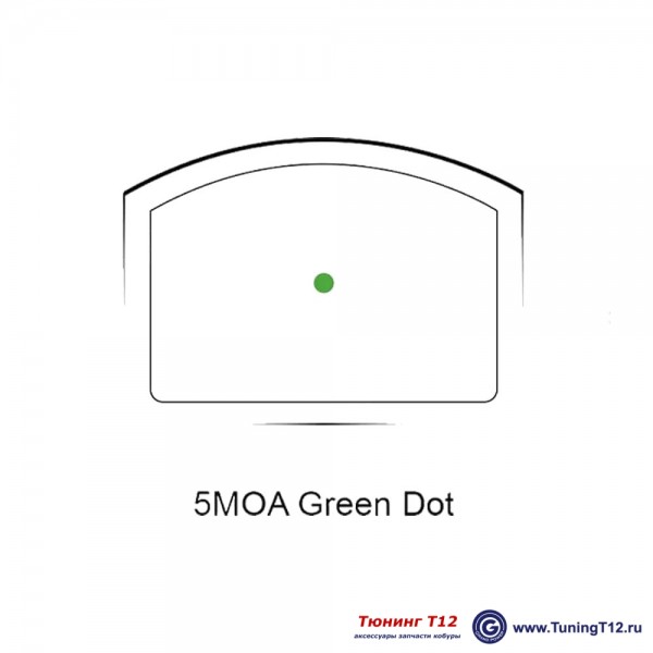 Зелёная прицельная метка лучше видна при дневном освещении и на разноцветном фоне цели (заметнее чем красная + более четкая точка). Размер точки в 5 МОА - обеспечивает быстрый захват цели. Такой размер точки оптимален для пистолетов и для стрельбы на короткие дистанции (15-50 метров).
