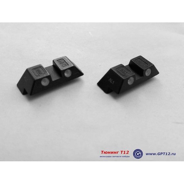 Точки тритиевых прицельных обеспечивают контрасные белые метки при дневном освещании и яркие зелёные точки в сумерках и полной темноте. Это самые универсальные оригинальные прицельные - для любого типа освещения и места применения оружия.