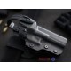 Извлечение оружия из кобуры возможно только при нажатии большим пальцем на специальный рычаг (thumb release) и механического смещения защитного ремня-скобы вперёд. И только после этого пистолет можно извлечь из кобуры. Это активная система безопасности ношения оружия в кобуре 2 уровня - Level II Active Retention Holsters. Систему рычаг-защёлка можно при необходимости демонтировать и использовать кобуру как открытую с пассивным удержанием только за счёт трения (Level I). Такой вариант кобуры отлично подойдёт для спортивной стрельбы IPSC, IDPA.