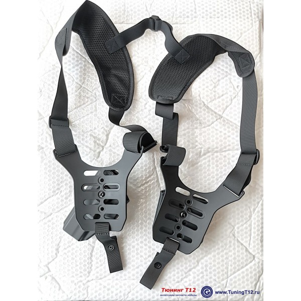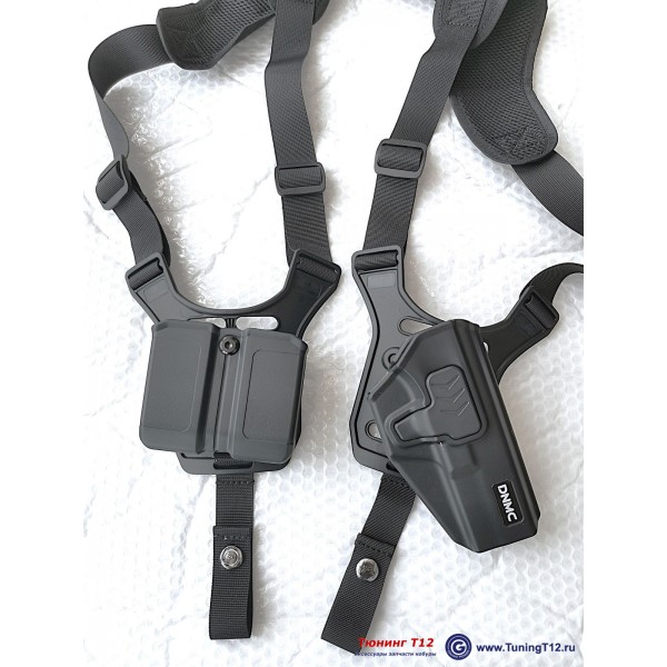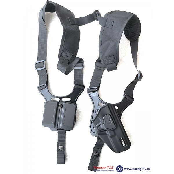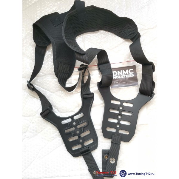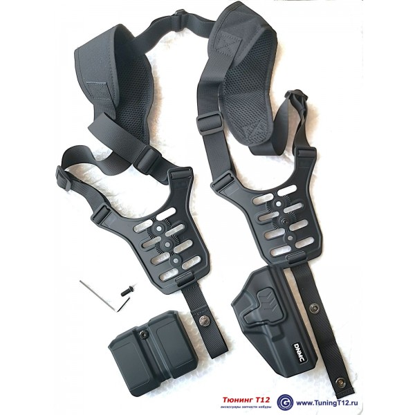 Кобура состоит из плечевых ремней из нейлона с двумя подвесными платформами-креплениями MRS-10 из полимера + полимерная кобура DNMC-1715 + двойной подсумок DNMC-U22B. В максимальной комплектации - добавлены 2 крепления для ношения кобуры и подсумка на ремне.