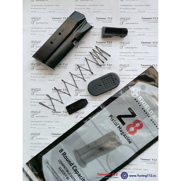 Совместимость: предназначен для использования только в пистолетах Glock 43. Подходит для травматических пистолетов Глок-Т 43 изготовленных на базе G43. Магазин подходит только для одной моделей пистолета !